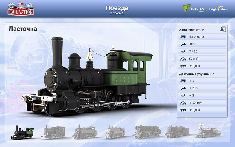 Кто из нас не играл в детстве с железной дорогой? Поезда, локомотивы, бесконечные железнодорожные пути привлекают миллионы фанатов со всего мира. Бесплатная браузерная игра Rail Nation поможет почувствовать себя настоящим железнодорожным магнатом. Построй собственную железнодорожную империю, пройди путь от первых паровых паровозов до современных скоростных локомотивов. Игра Райл Натион от компании Travian полностью на русском языке, она понравится любителям симуляторов и транспортных стратегий.